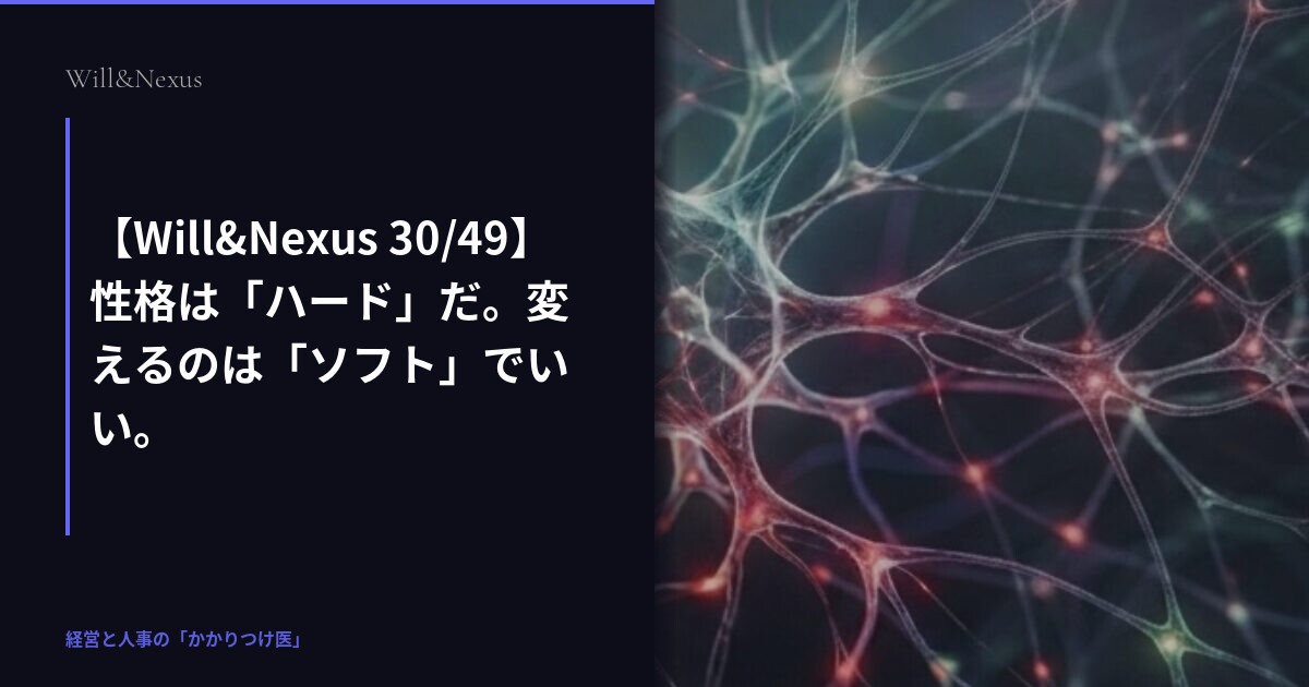 ハードウェア(性格・特性)は、その人が生まれ持った、あるいは長い年月で形成された土台だ。内向的か外向的か。慎重か大胆か。論理的か感覚的か。これは簡単には変わらない。変える必要もない。
