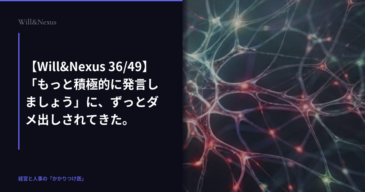 【Will&Nexus 36/49】「もっと積極的に発言しましょう」に、ずっとダメ出しされてきた。