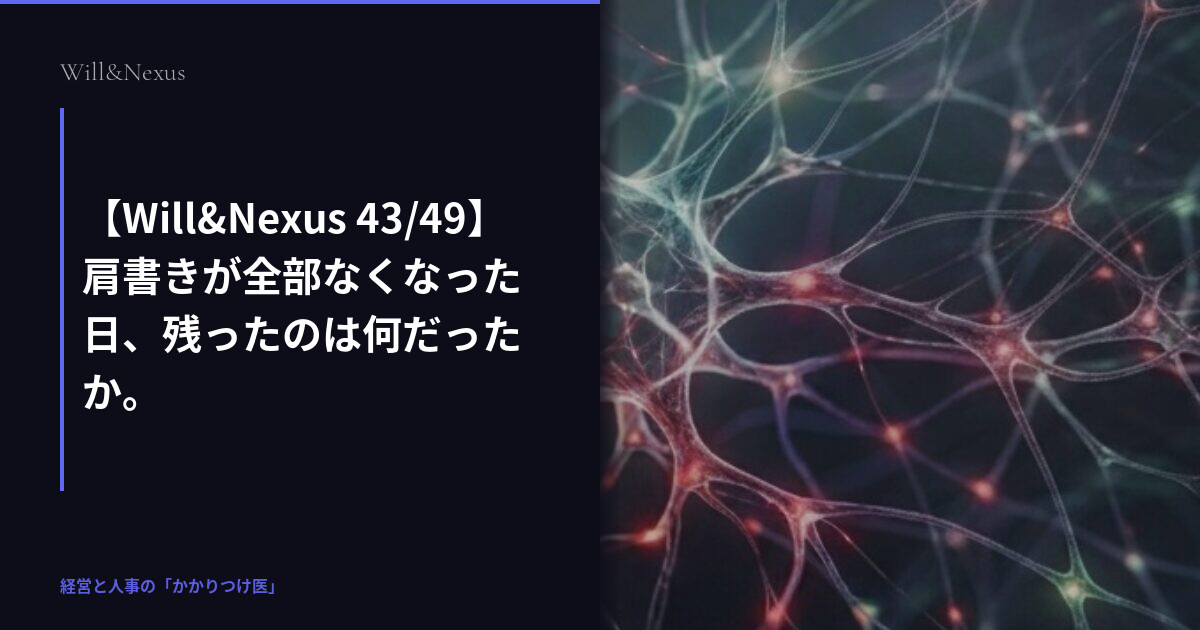 でも、しばらくすると気づいたことがある。記号がなくなっても、残っていたものがあった。「構造を見る目」と「それを言語化したいという衝動」。誰に頼まれなくても、組織の課題を見ると「ここはこう設計すればいい」と考えている自分がいた。