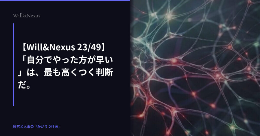 【Will&Nexus 23/49】「自分でやった方が早い」は、最も高くつく判断だ。