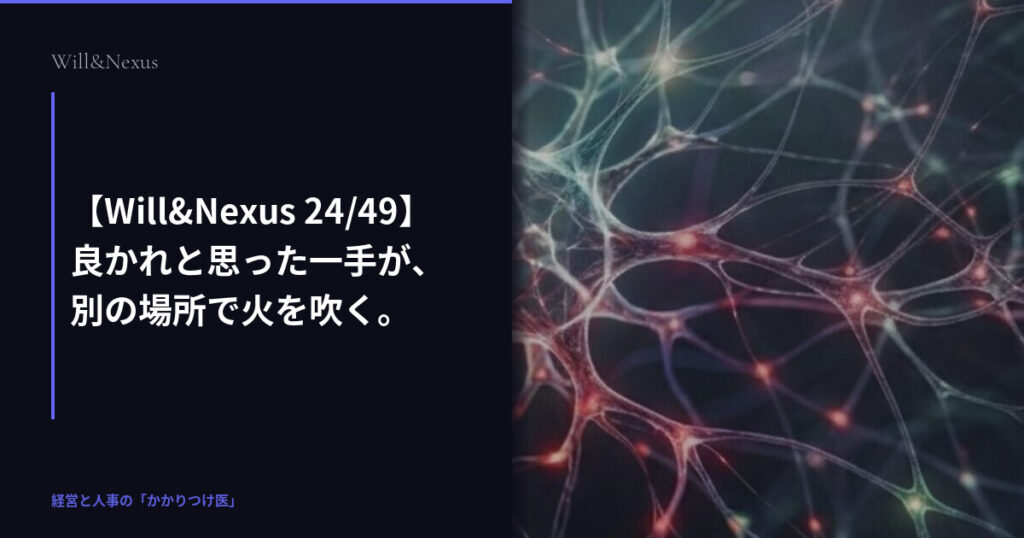 良かれと思って打った一手が、別の場所で火を吹く 組織を変えようとするとき、最もよくある失敗がある。 「施策が正しいのに、予想外の副作用が出る」というパターンだ...Will&Nexus -