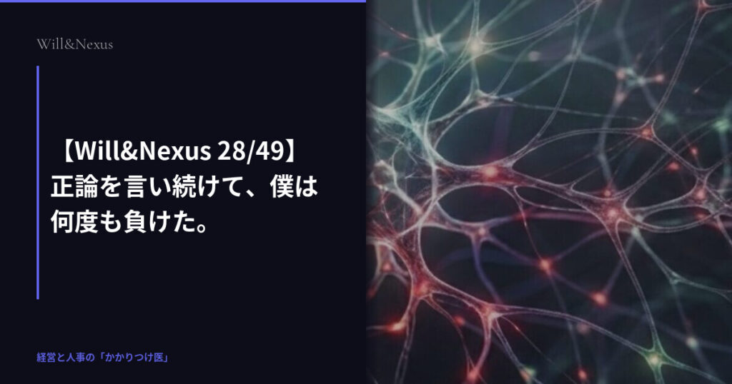 「正しいのに、通らない」 コンサルタントとして仕事をしていた時期、ある金融系のプロジェクトに入ったことがある。 プロジェクトの進め方に構造的な問題があった。こ...Will&Nexus -