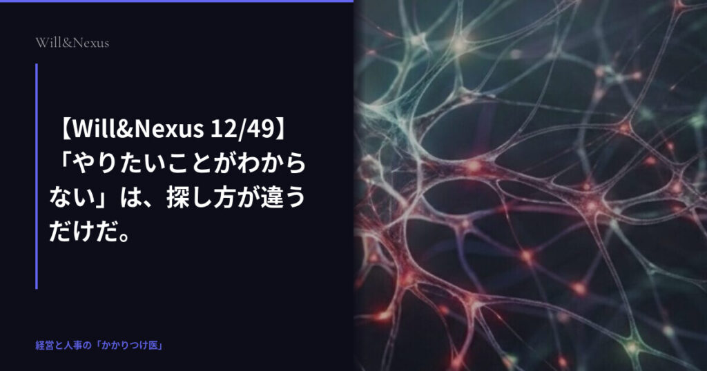 【Will&Nexus 12/49】「やりたいことがわからない」は、探し方が違うだけだ。