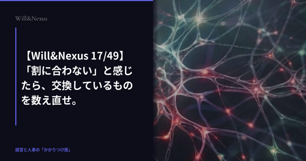【Will&Nexus 17/49】「割に合わない」と感じたら、交換しているものを数え直せ。