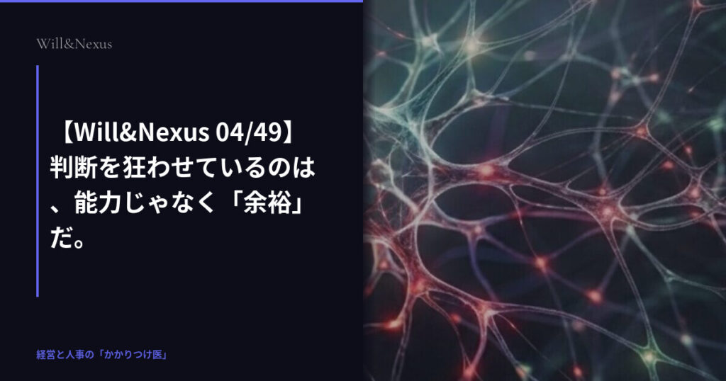 【Will&Nexus 04/49】判断を狂わせているのは、能力じゃなく「余裕」だ。